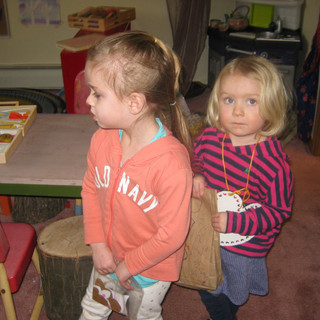 There was a lot of love given and talked about this week with our theme of 'families'. All the World is a personal favorite children's book that the children read and then re-read throughout the week pointing out pictures of our 'community' or 'human' family. They noticed how we can share food with others at a farmer's market and a meal at a restaurant, or play and enjoy music with one another to share love. "We are a human family because we share the sunset," one friend noticed. Scissors cut out heart 'leaves' for our school family trees which proudly display the pictures/names of our students in our classroom. We stretched this idea by creating our own family trees, drawing pictures and writing names of those in our own immediate families on heart leaves and attaching to sticks in a paper towel roll. The youngest really reveled in the love given to them by the entire school as they delicately took out each valentine in their bag and smiled. The letter "U' was practiced with paintbrushes in the air, in play dough, on chalkboards and with watercolors. We used our sense of sight to be detectives and spy for signs of Spring outside - then collaged some spring things to look out for. An egg carton and tiny wooden beads lent themselves to a fun number identification game and pincer grasp work. The warmth both outside (collecting water in drainpipes into cones! excitement and play with streams flowing!) and inside (hugs between 3 year olds/ so many of our students sharing that they are grateful for their friends at school during lunch/ saying "I will miss you" to one another) warmed this teacher's heart as we leave for a winter break.