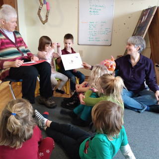 Nancy has been helping all of us hone our storytelling skills both through example and through lots of different activities. She gives the children opportunities to use their bodies, faces, and tones to help make a story sing. She helps them to recognize their moments of brilliance and to identify those moments for each other. This week she had our prek through second graders, practicing telling a story with a feltboard to help them remember the order or events. She shared the first part of one of her performances that she brings into schools and other places in the community "How I Came to Dowagiac," a story from the perspective of one child brought on an orphan train from New York City to the midwest.