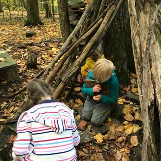 Our school has always had a familial feel with all of the grades coming together for recess and our adventure walk. All of our returning younger students have been asking about the older kids now that our hybrid model has them coming at opposite times each week. They've figured out some new ways to stay in touch though. They've been building block sculptures, creating worlds in the sandbox, and making additions to our "fairy houses" in the woods. There are some cards and notes being passed across the divide as well. It makes me happy to see them holding on to those connections.