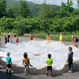 Our kids have been creating so much in their outdoor play lately. They organized parachute play and saw how high they could make it float in the air. They have been building seesaws and "lava paths" out of some of our moveable wooden parts. The top of the hill was the site of some fine dining with flower petal soup, dandelion tacos, and maple leaf dumplings. The waiters were kept running to various parts of the hillside, bringing a whole new meaning to "farm to table" dining. Various kids made a series of obstacle courses that had everyone jumping, running, and dodging around. In the woods, one of our favorite downed trees has been doing time as a dragon, transporting the kids to places all around the world and the solar system - who knew dragons could fly to Mars?