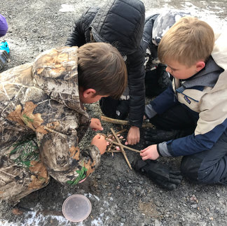 Our 5th grade kids had their third math test of the year. Their test taking abilities have improved! While testing is not a big part of the Country Classroom curriculum, preparing for and taking tests is an important life skill that we want to be sure our students have. They all did well! Their work on shapes had them making shapes out of ice chunks on our adventure walk. I love it when someone runs up to me saying, "Look! It's an equilateral triangle!" Soon everyone was bringing over different shapes they had made.